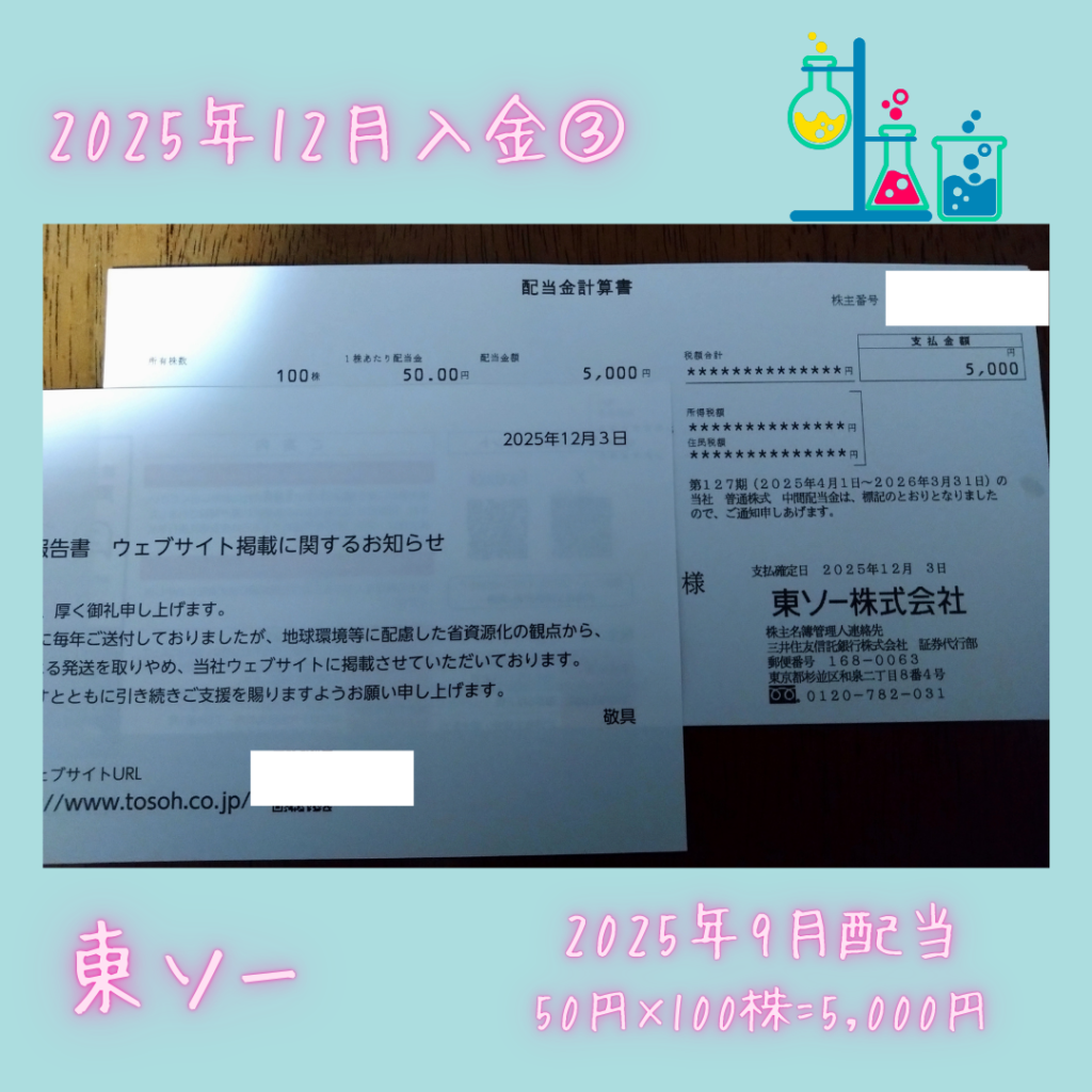 12月の配当金入金まとめ|日本株高配当投資1年目のリアル実績【三菱HCキャピタルなど】【2025年度】高配当の東ソーで豊かな生活を!配当生活への道【2026年3月期】