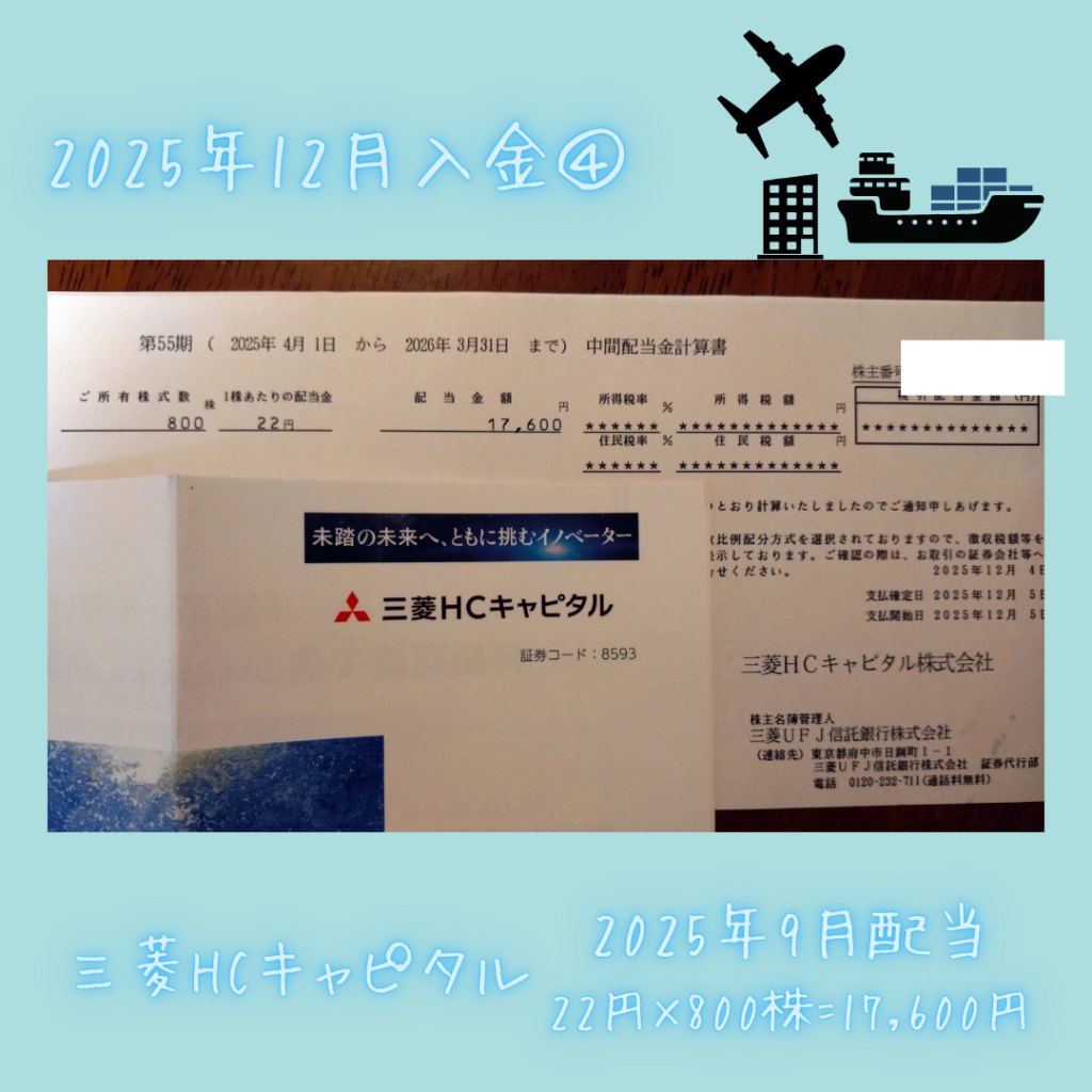 2025年12月の配当金実績まとめ(三菱HCキャピタルなど)【画像あり】