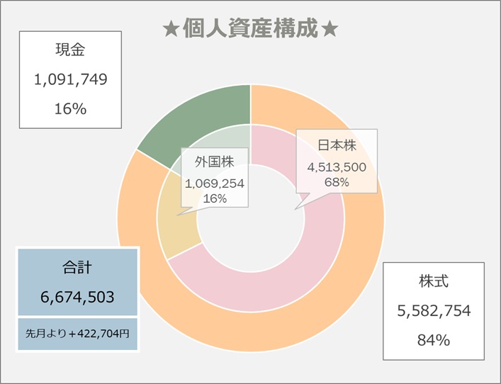 日本株も米株も結構買ったので、現金比率は低くなっています。
