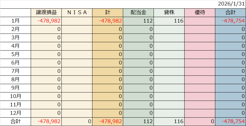 2026年1月31日までの取引・配当金・優待・貸株は?