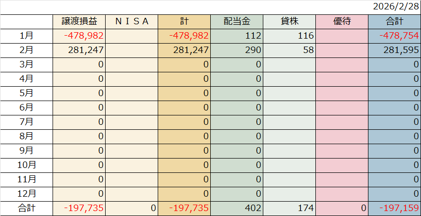 2026年2 月28日までの取引・配当金・優待・貸株は?