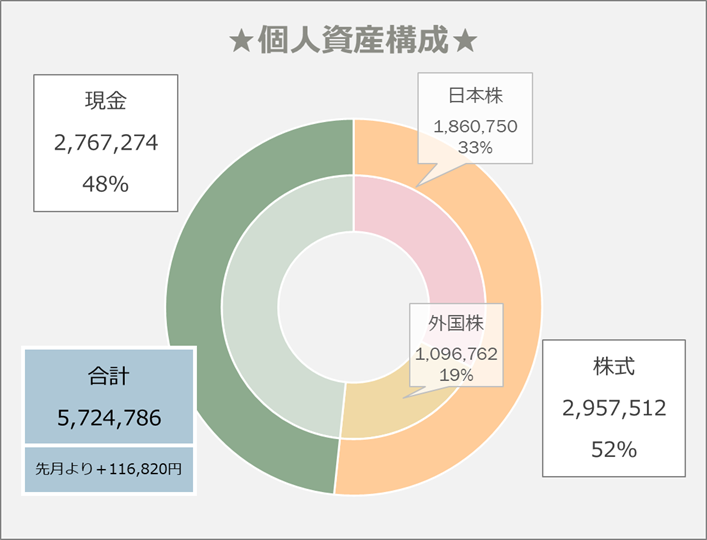 育ててきた銘柄を利確したので、現金比率は先月より更に増えました。