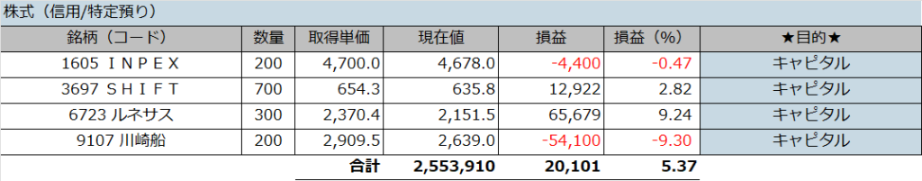 一方のINPEXと川崎汽船は買いで入っています。
