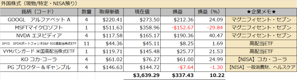 外国株式(現物/特定+NISA預り)合計