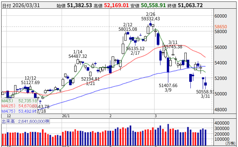 2026年3月31日終値です。