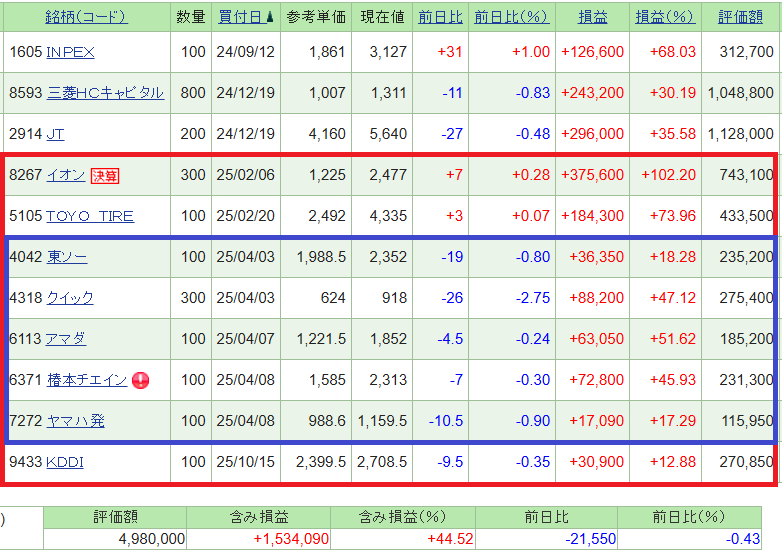 • 夫婦2人の名義に240万円入金し主に日本株高配当銘柄を購入(選定・タイミングお任せ)