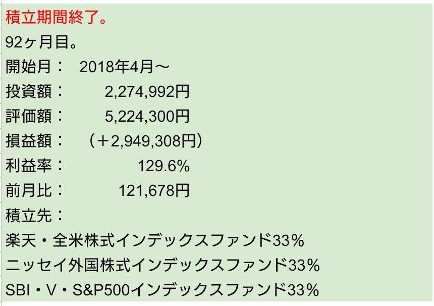 今年も投資のおかげで資産は非常に増えました。ありがたいです。