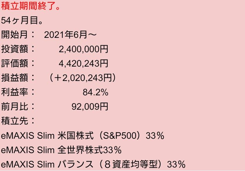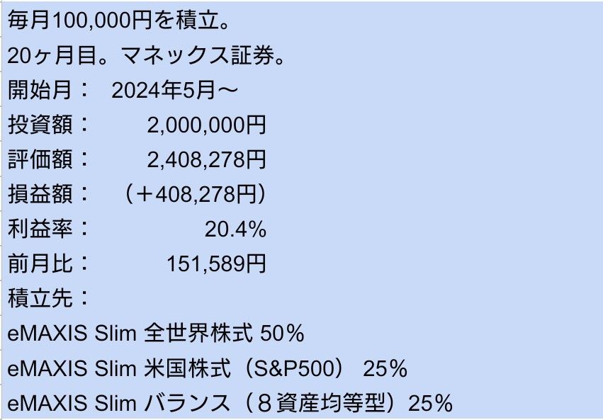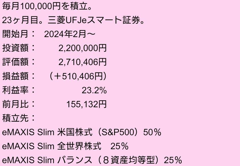 こちらは毎月10万円ずつの積立中です。