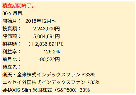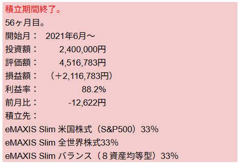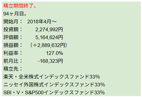 こちらも積立額よりも前月比の方が少ないので、パフォーマンスは良くないです。
