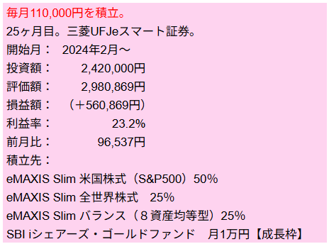 3人の男の子を育てる三世代同居6人家族のママことハレバレちゃんです。 子ども3人の教育資金および夫婦の老後資金を準備すべく、投資信託で資産形成を行っています。今回は2026年2月25日現在の残高を報告します。